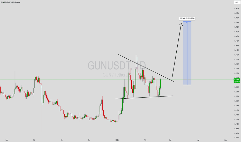 GUNUSDT is forming a clear bullish momentum pattern, a classic bullish reversal signal that often indicates an upcoming breakout. The price has been consolidating within a narrowing range, suggesting that selling pressure is weakening while buyers are beginning to regain control. With consistent volume confirming accumulation at lower levels, the setup hints at a potential bullish breakout soon. The projected move could lead to an impressive gain of around 140% to 150% once the price breaks above the wedge resistance. This falling wedge pattern is typically seen at the end of downtrends or corrective phases, and it represents a potential shift in market sentiment from bearish to bullish. Traders closely watching GUNUSDT are noting the strengthening momentum as it nears a breakout zone. The good trading volume adds confidence to this pattern, showing that market participants are positioning early in anticipation of a reversal. Investors’ growing interest in GUNUSDT reflects rising confidence in the project’s long-term fundamentals and current technical strength. If the breakout confirms with sustained volume, this could mark the start of a fresh bullish leg. Traders might find this a valuable setup for medium-term gains, especially as the wedge pattern completes and buying momentum accelerates. ✅ Show your support by hitting the like button and ✅ Leaving a comment below! (What is your opinion about this Coin?) Your feedback and engagement keep me inspired to share more insightful market analysis with you!