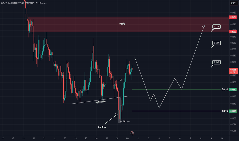 This is the one time and one chance. This is the last chance and this one only... Good afternoon my fellow Cryptocurrency trader, how are you feeling in this wonderful day? I hope life is treating you well. If you have challenging times going on, hold strong. Keep moving forward because whatever is happening now shall pass. If you are doing great, enjoy, you've earned it. You are the light of life and you deserve the best. » Technical analysis Look at OPUSDT (Optimism). This is how I like it and I think-believe you agree. Right? Please tell me I am correct. Don't you like the market when it is trading at bottom prices? Not a crash, that's hard and painful unless you are short. But once we hit bottom, the action remains there for a while and we know, oh yes!..., we know the market is set to recover and grow. That's why I like it just the way it is today. It is the opportunity of the moment, but more will always made manifest. Thank you for reading once more. I hope the content is to your liking. I truly appreciate your continued support. OPUSDT hit a true bottom, an all-time low, late last month. This month, the same level is being challenged but there is no doubt anymore. It is not about how much lower can it go; will it crash? It is not about that. It is about unavoidable change. When the market was high, there was no way to stop the development of a bearish market phase. As the market is now, low, at the bottom, there is no way to stop a wave of growth. That's how we like it... We enjoy being at bottom because the only possible scenario left is growth. Even sideways with an upward bent turns out being green. OPUSDT has been dropping since March 2024, two years ago. In the past, we would expect a bear market to last only one year with sustained bearish action. March 2026 and no more bearish action is possible. That's my prediction based on the charts. Many people will say that a crash starts now, from the all-time low. That's ok, we love them anyway. Many people will tell you that growth is not possible because... You can make up any excuse, everybody has an opinion; but, what about the charts? We have to go deep but you already know. The oscillators, the MACD. The MACD always shows when a reversal will come. That's because it tends to hit bottom much sooner compared to the chart in question. OPUSDT weekly MACD hit bottom August 2024. The project is hitting bottom now. That's a hyper strong bullish divergence and we also have a bullish cross. Nothing more is needed. We are going up. Namaste.