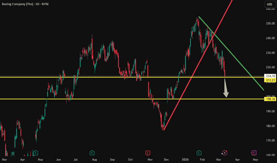 Boeing is trading around $232 after failing to show strong follow‑through on prior market strength. While the broader market has seen rotational buying, BA hasn’t attracted consistent upside volume. Instead, price action has looked heavy, with rallies fading rather than expanding. This kind of behavior often precedes a slow grind lower rather than a sharp bounce.