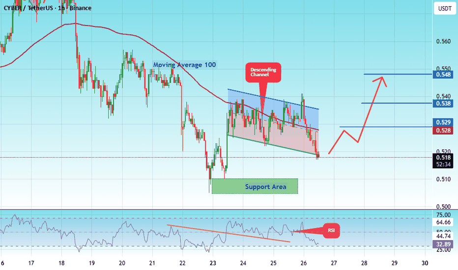 CYBERUSDT is forming a clear falling wedge pattern, a classic bullish reversal signal that often indicates an upcoming breakout. The price has been consolidating within a narrowing range, suggesting that selling pressure is weakening while buyers are beginning to regain control. With consistent volume confirming accumulation at lower levels, the setup hints at a potential bullish breakout soon. The projected move could lead to an impressive gain of around 140% to 150% once the price breaks above the wedge resistance. This falling wedge pattern is typically seen at the end of downtrends or corrective phases, and it represents a potential shift in market sentiment from bearish to bullish. Traders closely watching CYBERUSDT are noting the strengthening momentum as it nears a breakout zone. The good trading volume adds confidence to this pattern, showing that market participants are positioning early in anticipation of a reversal. Investors’ growing interest in CYBERUSDT reflects rising confidence in the project’s long-term fundamentals and current technical strength. If the breakout confirms with sustained volume, this could mark the start of a fresh bullish leg. Traders might find this a valuable setup for medium-term gains, especially as the wedge pattern completes and buying momentum accelerates. ✅ Show your support by hitting the like button and ✅ Leaving a comment below! (What is your opinion about this Coin?) Your feedback and engagement keep me inspired to share more insightful market analysis with you!