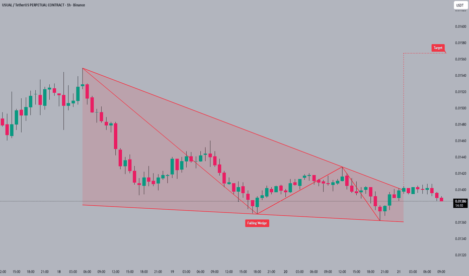 USUALUSDT is forming a strong falling wedge pattern, which is widely recognized as a bullish reversal setup in technical analysis. This pattern occurs when price consolidates within narrowing trendlines, eventually leading to a breakout to the upside. The current structure indicates that selling pressure is weakening, while buying momentum is gradually building. With solid trading volume supporting this move, the breakout potential looks very promising.